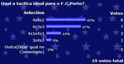 Todos se questionam qual seria a táctica ideal para este F.C.Porto, e a votação mostra que é uma votação bastante dividida, entre o 4x4x2 e 4x3x3.