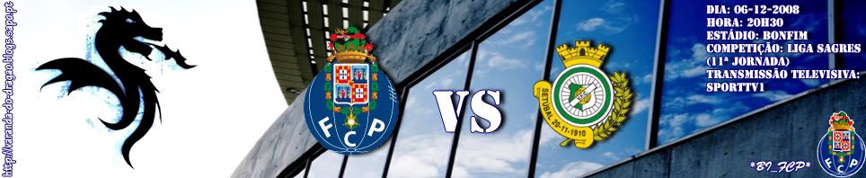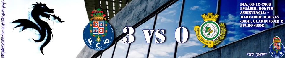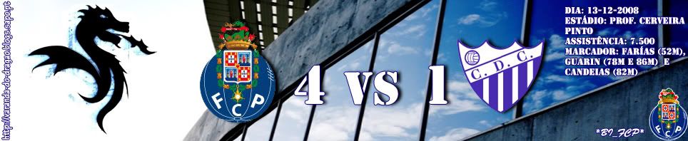 PS. Gostava de dizer apenas uma coisa, não entendam isto como uma critica, mas eu tenho passado, como faço todos os dias, pela blogosfera portista e muitos mas muitos blogs portistas teimam em falar no BENFICA, que está a ser ajudado e que fazem uma grande festa e que perderam 5 e muitas outras coisas, meus caros, PREOCUPEM-SE COM O F.C.PORTO e deixem os outros festejar, chorar o que eles bem entenderem, no FIM FESTEJAMOS NÓS, e eles que chorem, Um abraço a todos os PORTISTAS que por aqui passam.