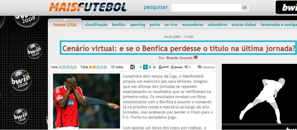 Primeiro o titulo como podem ver nesta imagem "...se o Benfica PERDESSE...", perdesse o que?!... eles estão a beira de ganhar alguma coisa?!, dá a entender que são eles que comandam neste momento a Liga.