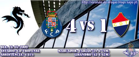 De resto ainda houve um golo do trofa já no fim do encontro e já com Ventura na baliza, que assim se tornou Campeão juntamente com o Sérvio Stepanov, o F.C.Porto mostrou mais uma vez que não brinca em serviço e que está mesmo no Campeonato para vencer todos os jogos até ao fim como Jesualdo diz e por falar em Jesualdo, renovou por mais um ano, um momento alto para o Prof e penso que para todos os Portistas.