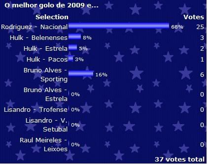 Mais uma análise a um questionário feito de qual seria o melhor golo de 2009, sem dúvida alguma foi o de Rodriguez frente ao Nacional da Madeira, já eleito pela maior parte da comunicação social como o melhor da época os adeptos portistas não se ficaram atrás e também elegeram o golo de Rodriguez como o melhor, em 2º lugar ficou também um grande golo e muito importante o de Bruno Alves ao Sporting de livre fazendo o 2-1 no resultado.