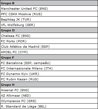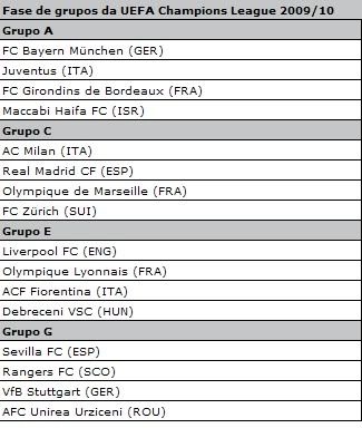 Aqui ficam os grupos da Champions League: